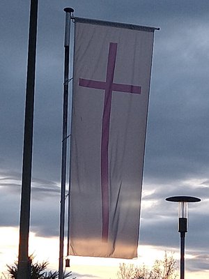 Die evangelische Kirche tut dies mit dem violetten Kreuz auf weißem Grund. Vielleicht eine Notlösung, weil alle anderen Farben schon vergeben waren. Aber, das Violett mit all den Facetten, die diese Woche schon eine Rolle gespielt haben: Vorbereitung, Buße, Leiden… erzählt, dass wir in der Kirche auch die im Blick haben wollen, die sonst eher im Abseits stehen.